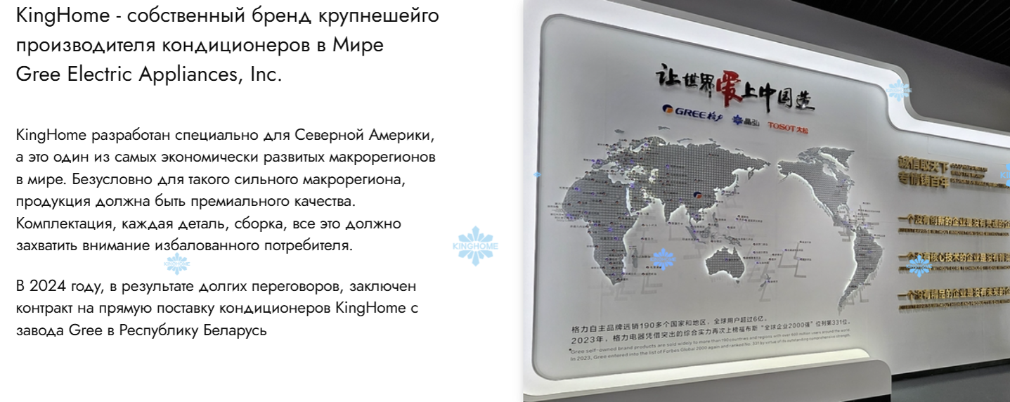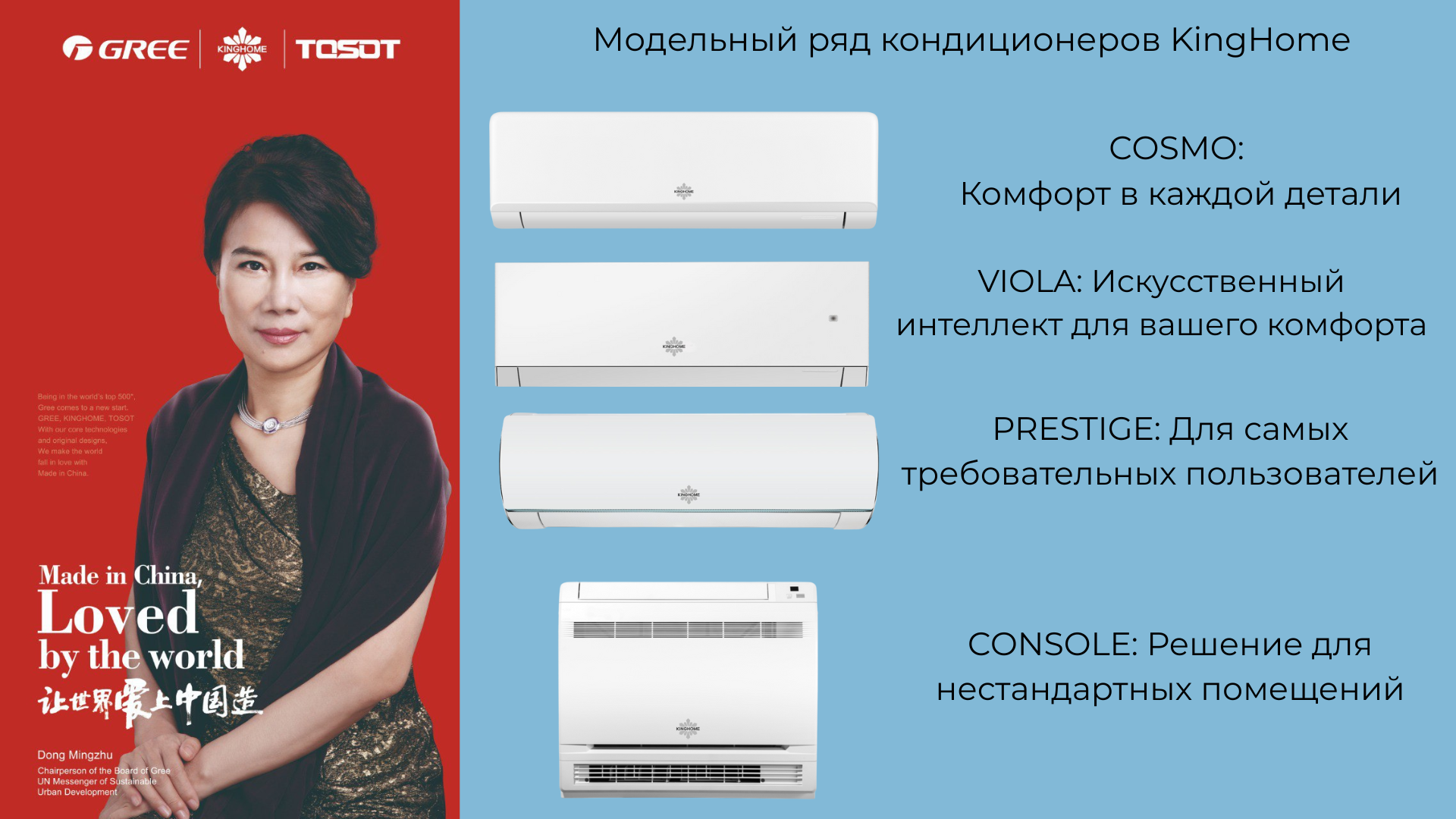KingHome — это премиальный бренд легендарной компании Gree Electric Appliances, мирового лидера в производстве климатической техники. Основанная в 1991 году, компания прошла впечатляющий путь от специализированного производителя бытовых кондиционеров до диверсифицированного технологического гиганта. Сегодня продукция Gree пользуется доверием 300 миллионов покупателей по всему миру, а годовой объем производства превышает 66 миллионов единиц оборудования.