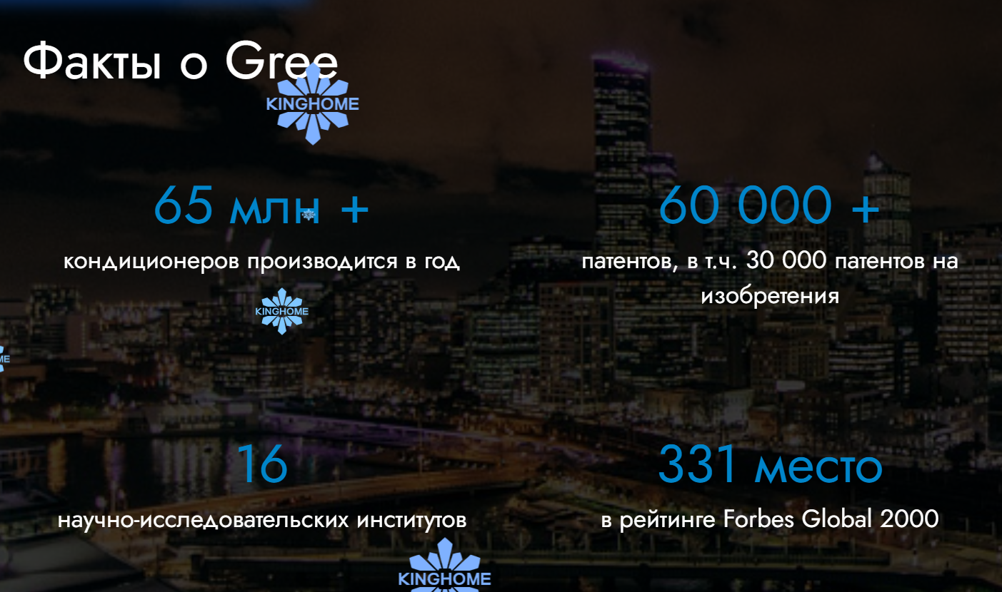 Gree Electric Appliances — это multinational enterprise с 70,000 сотрудников и годовым производством 65.5 миллионов единиц техники. Компания зарегистрирована на Шэньчжэньской фондовой бирже с 1996 года и является крупнейшим в мире производителем бытовых кондиционеров